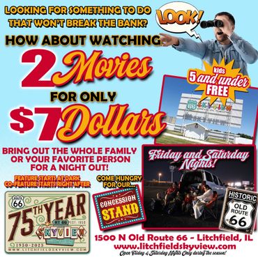 The Litchfield Rt 66 Skyview Drive-In Theater, located on Historic Old Route 66, is in its 75th consecutive season of bringing you big-screen entertainment. Opening in June 1950, the Litchfield Rt 66 Skyview is the last original drive-in that has been open every season since 1950. There are others along Rt 66, but they have either opened and closed and re-opened, or sadly just closed.
